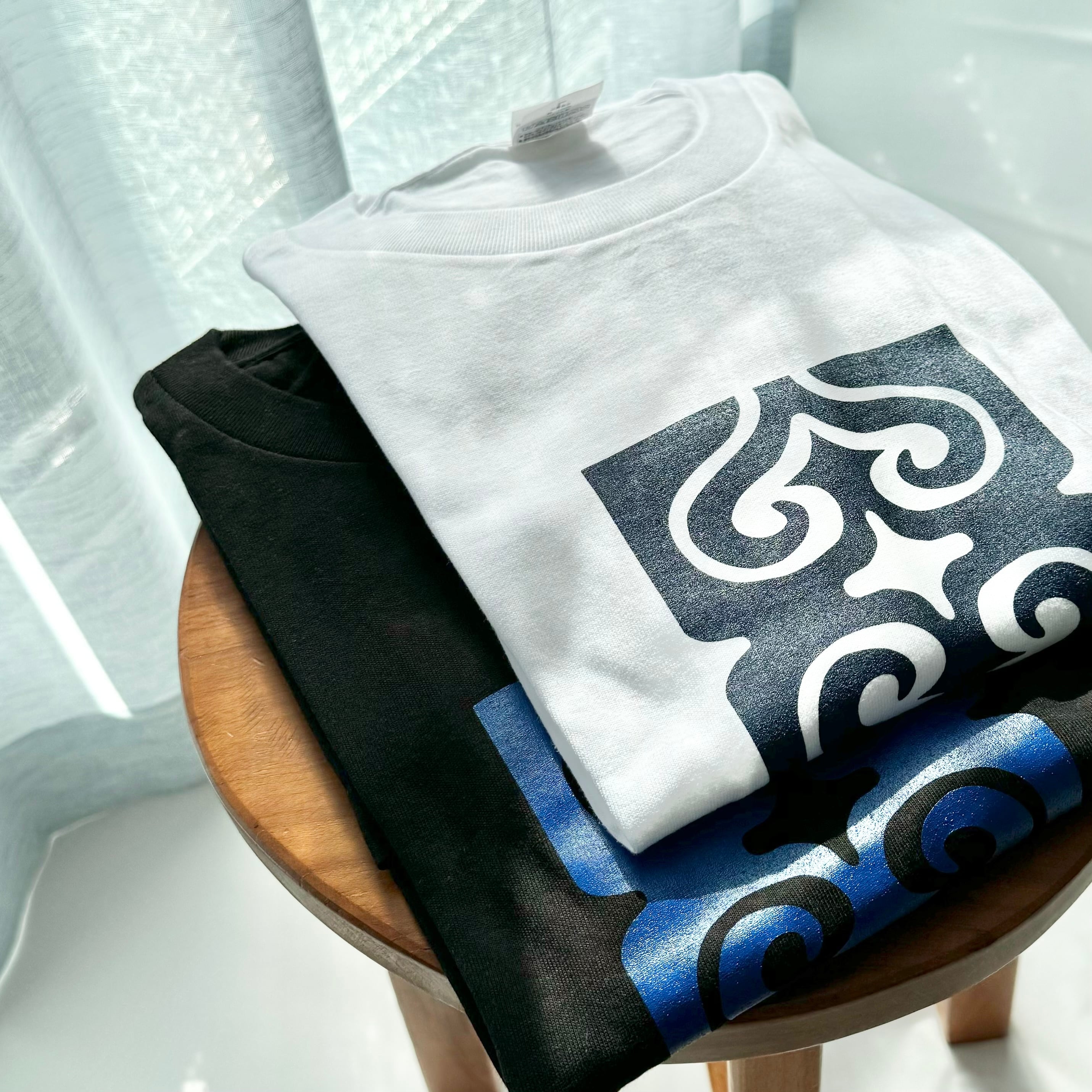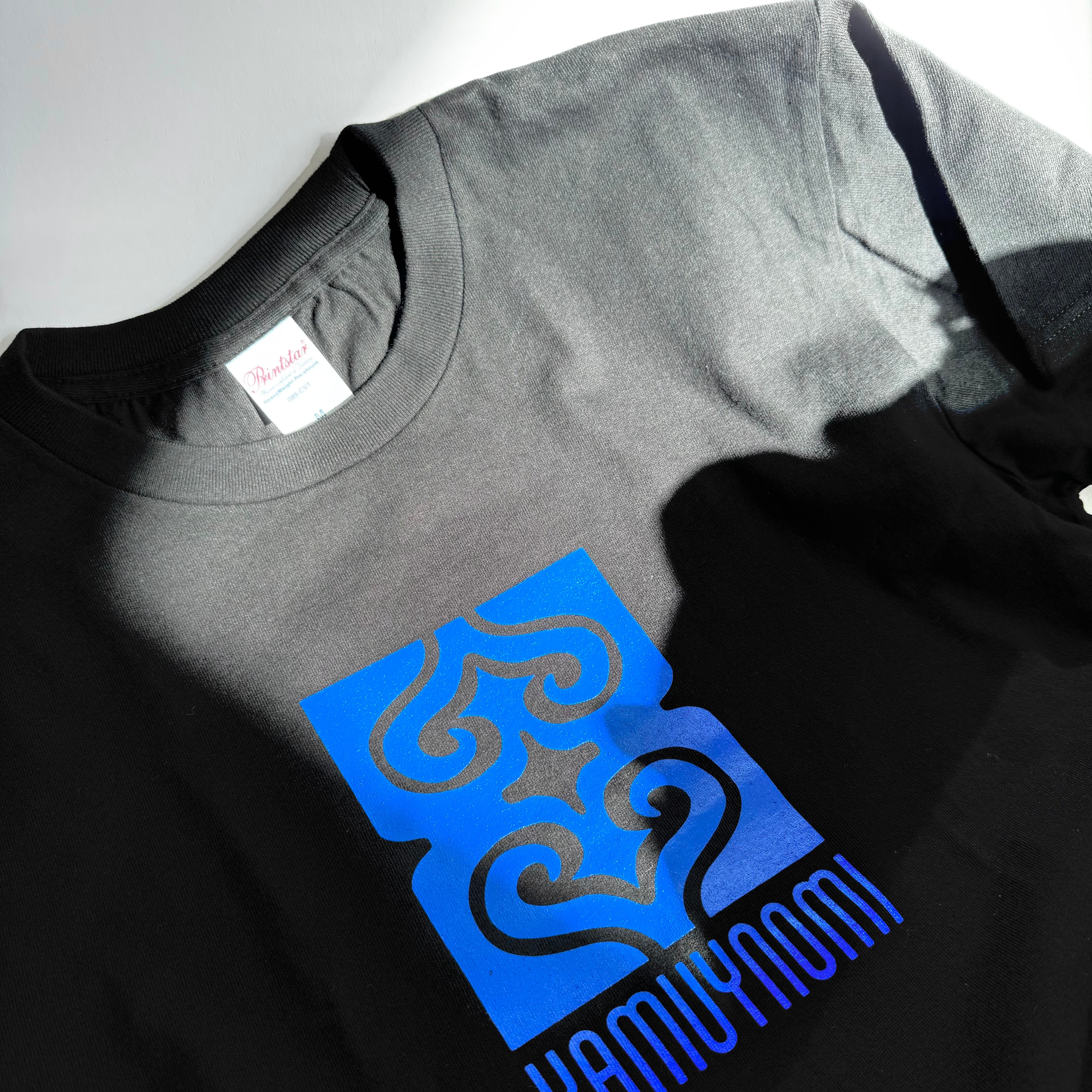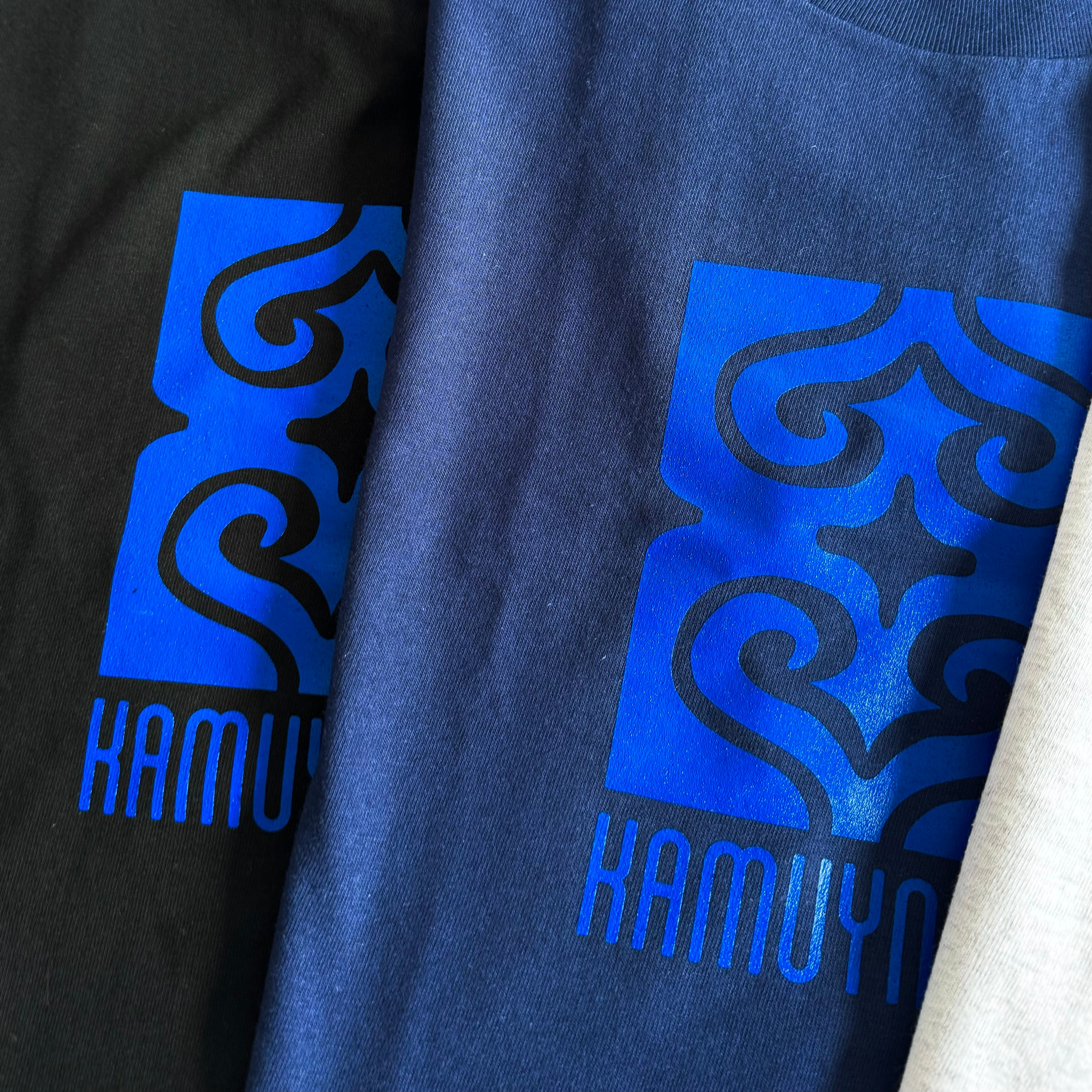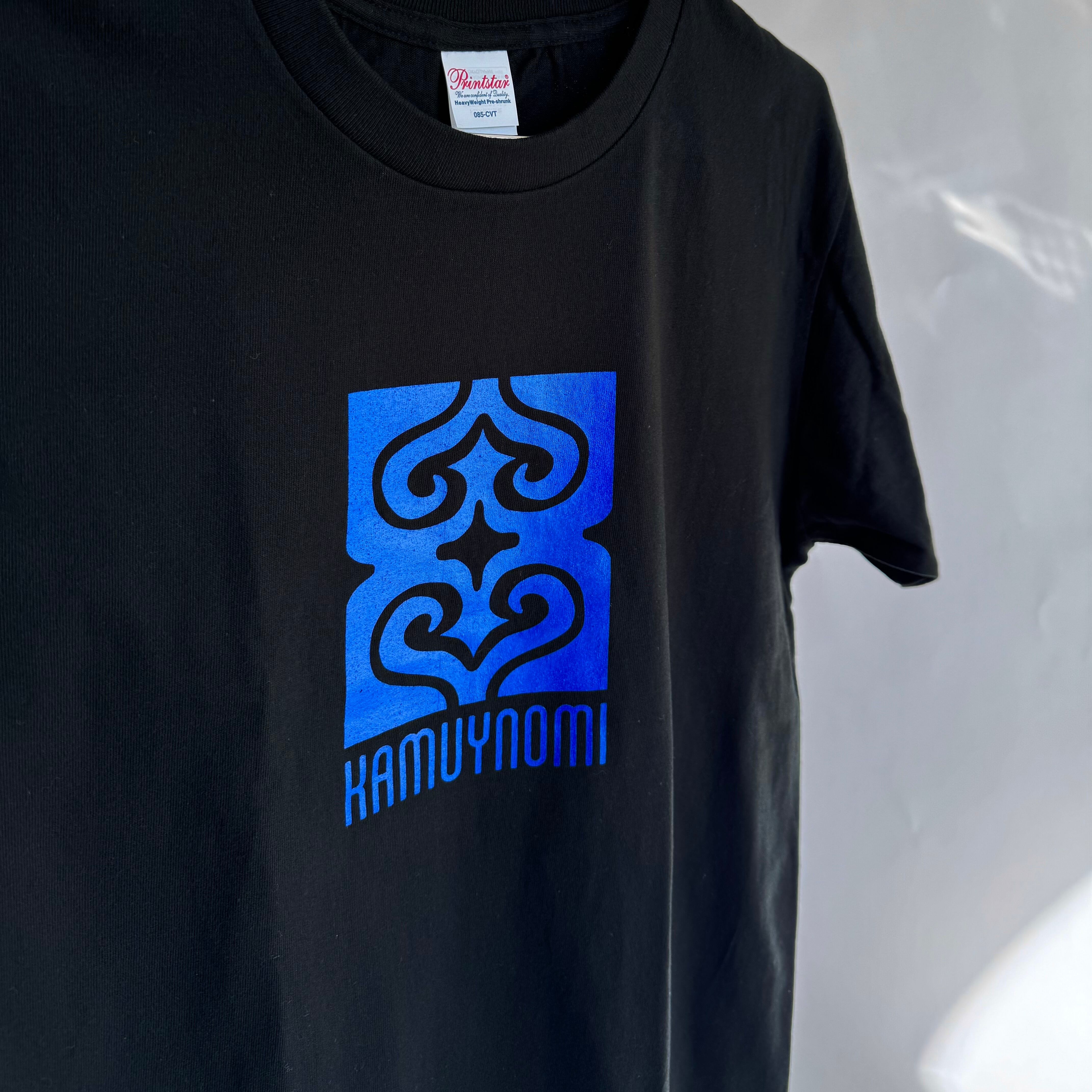 【ブラック×ブルー】KAMUYNOMIブランドロゴ アイヌ紋様Tシャツ