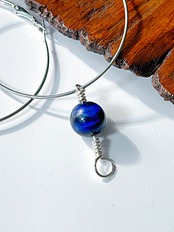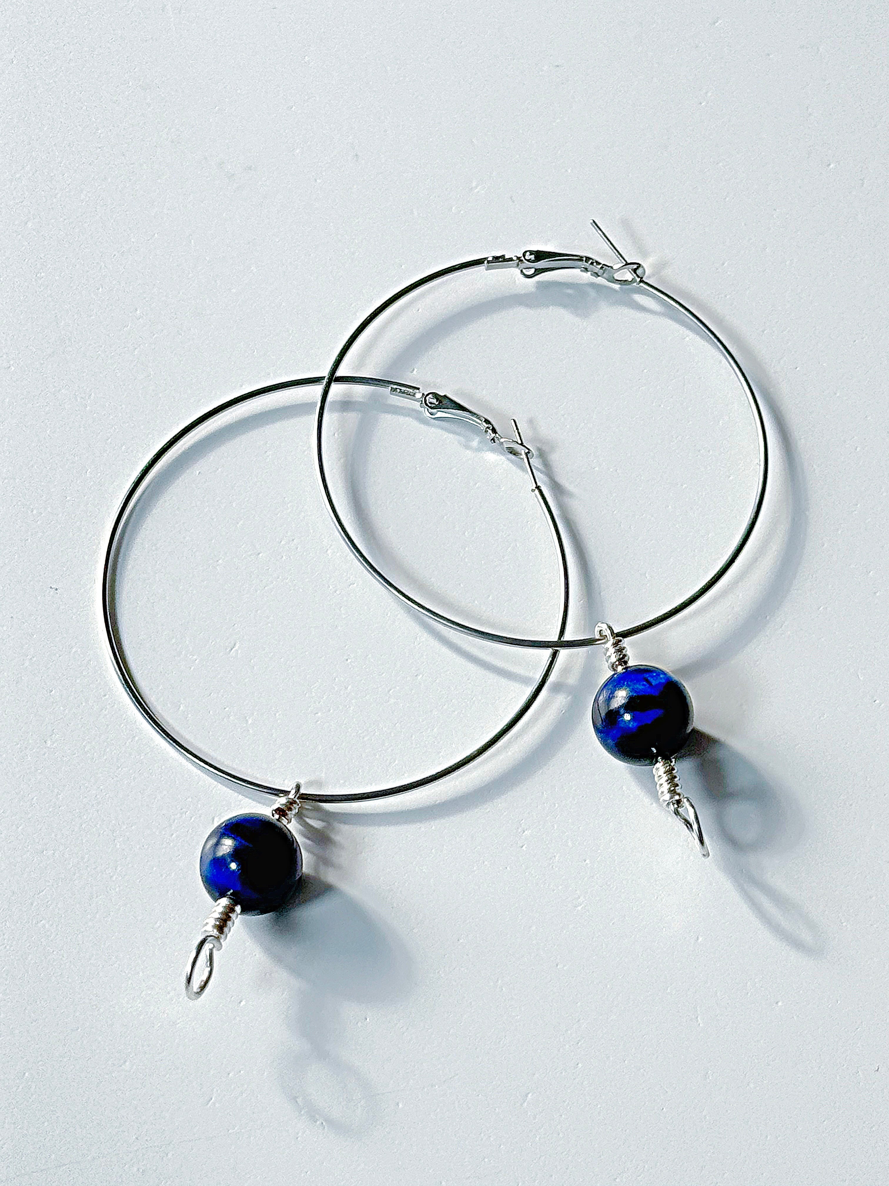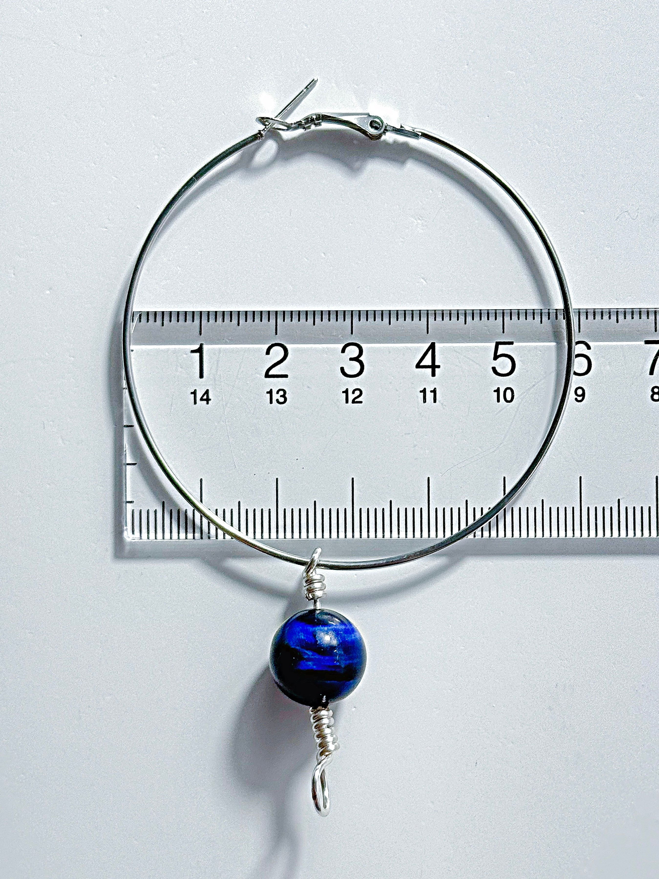【ブルーオブシディアン】アイヌ ニンカリ風ピアス フープピアス/60mm