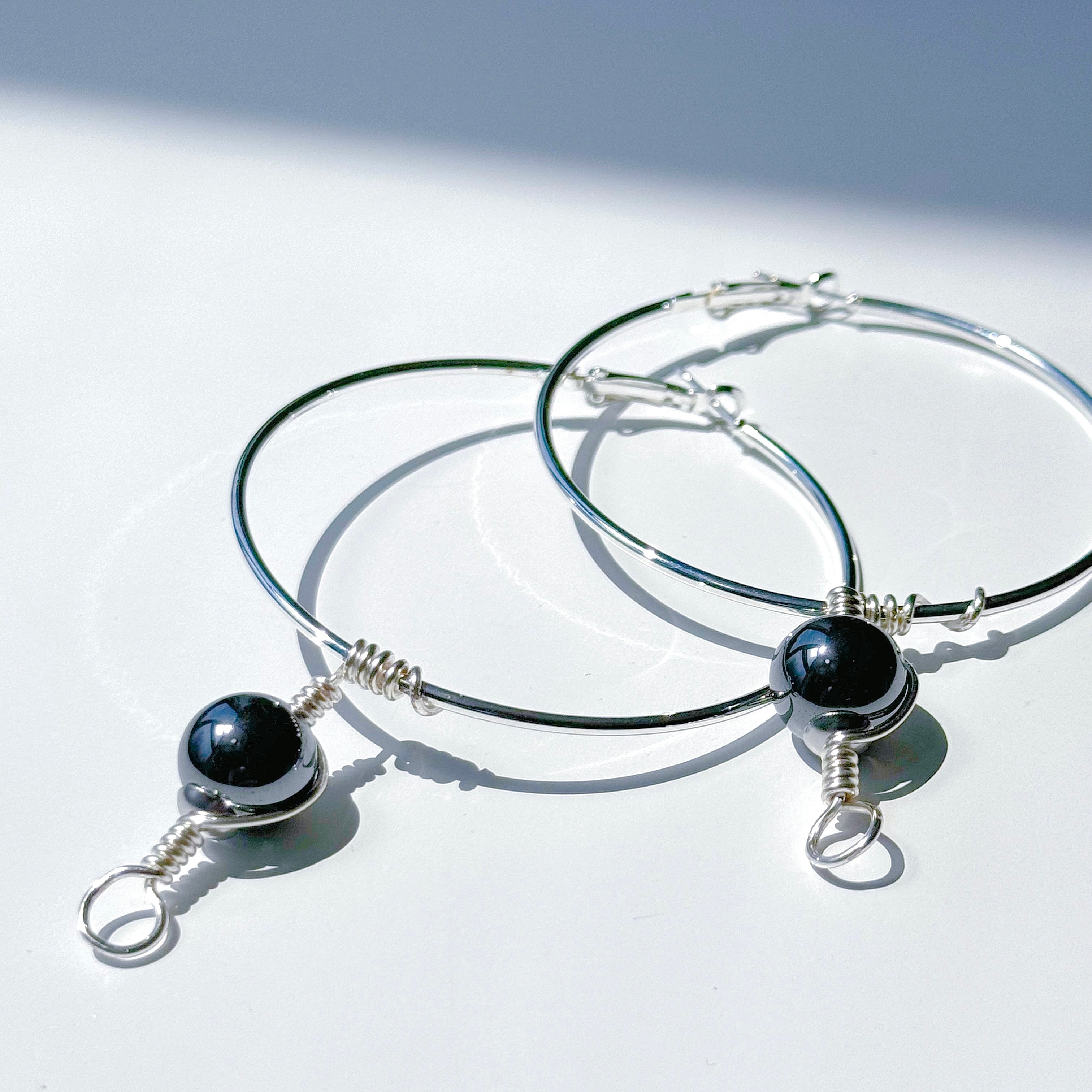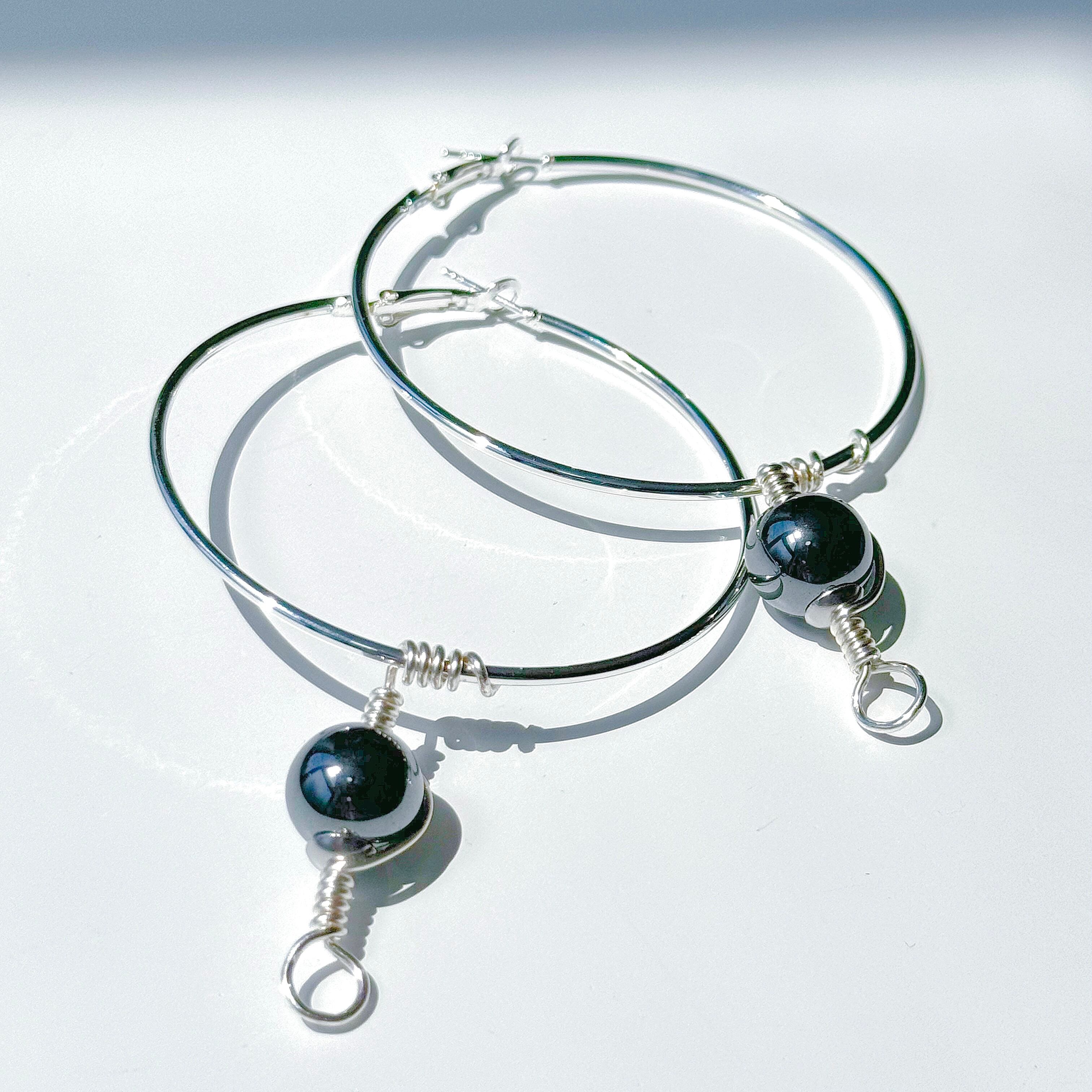 ◾️ビーズ(ヘマタイト):ブラックシルバー/約13mm