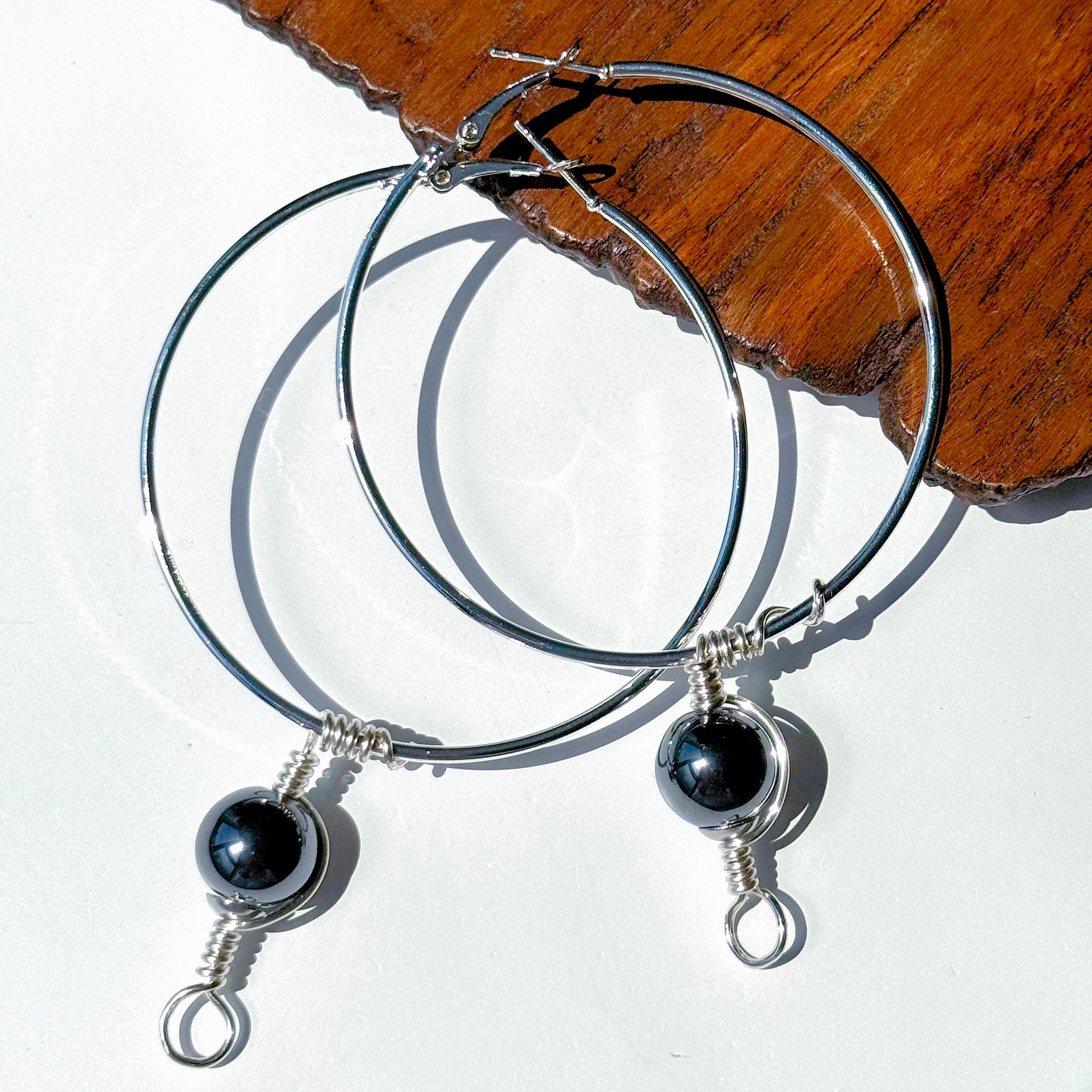 【ヘマタイト(赤鉄鉱)】アイヌ ニンカリ風ピアス フープピアス/60mm