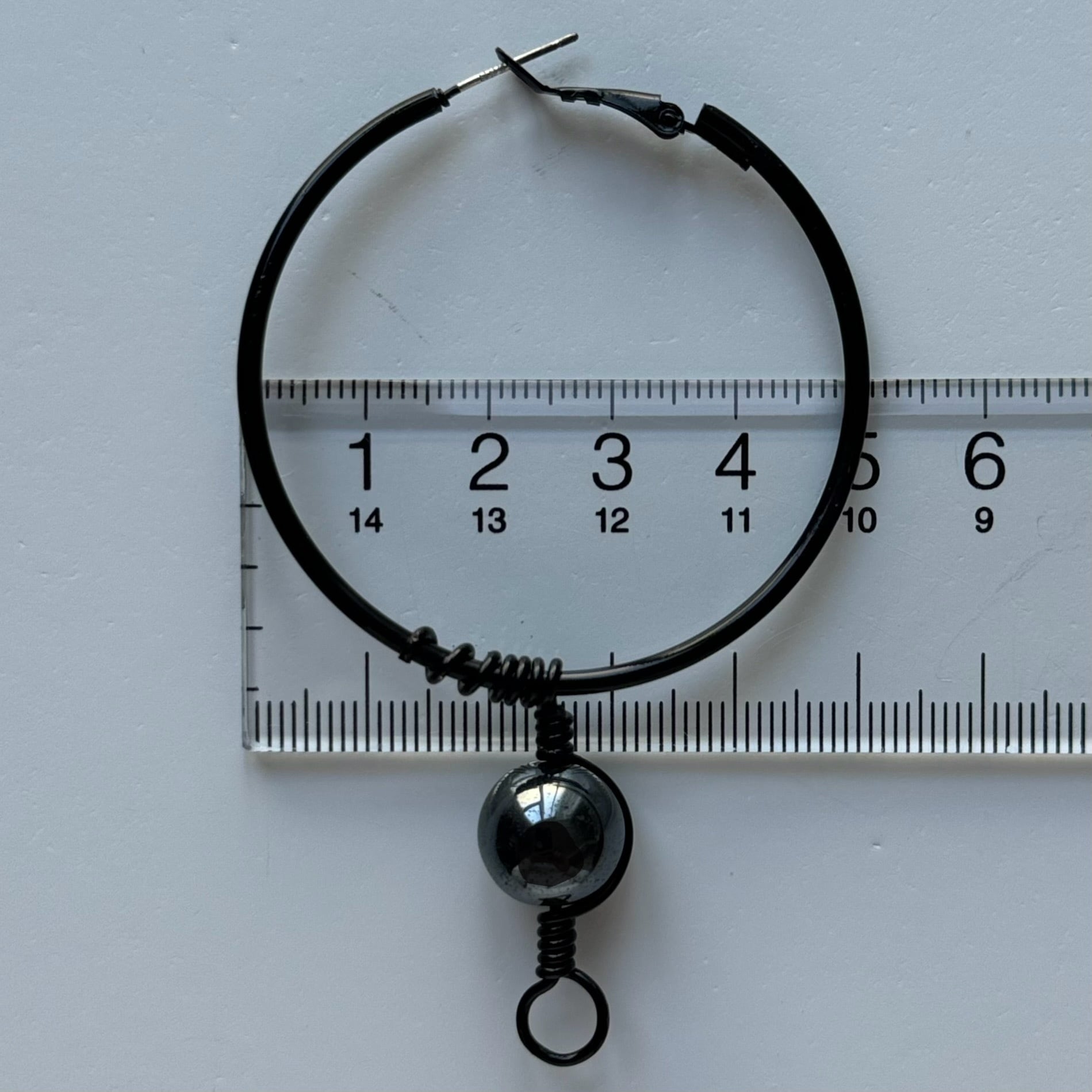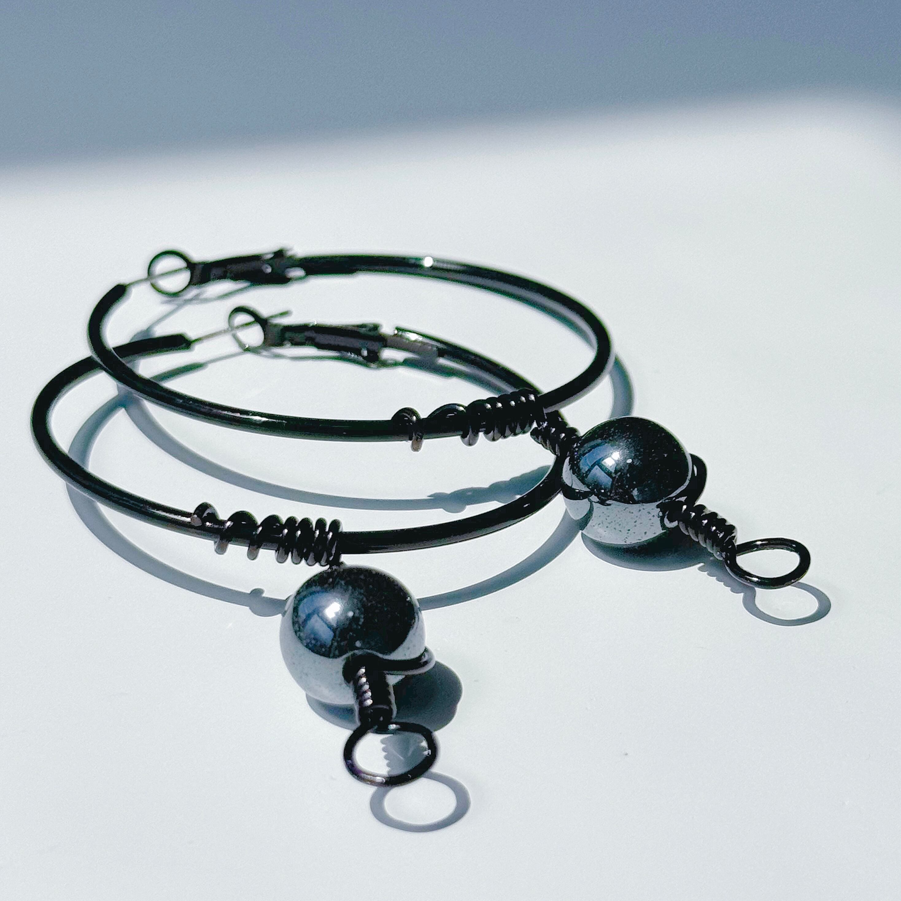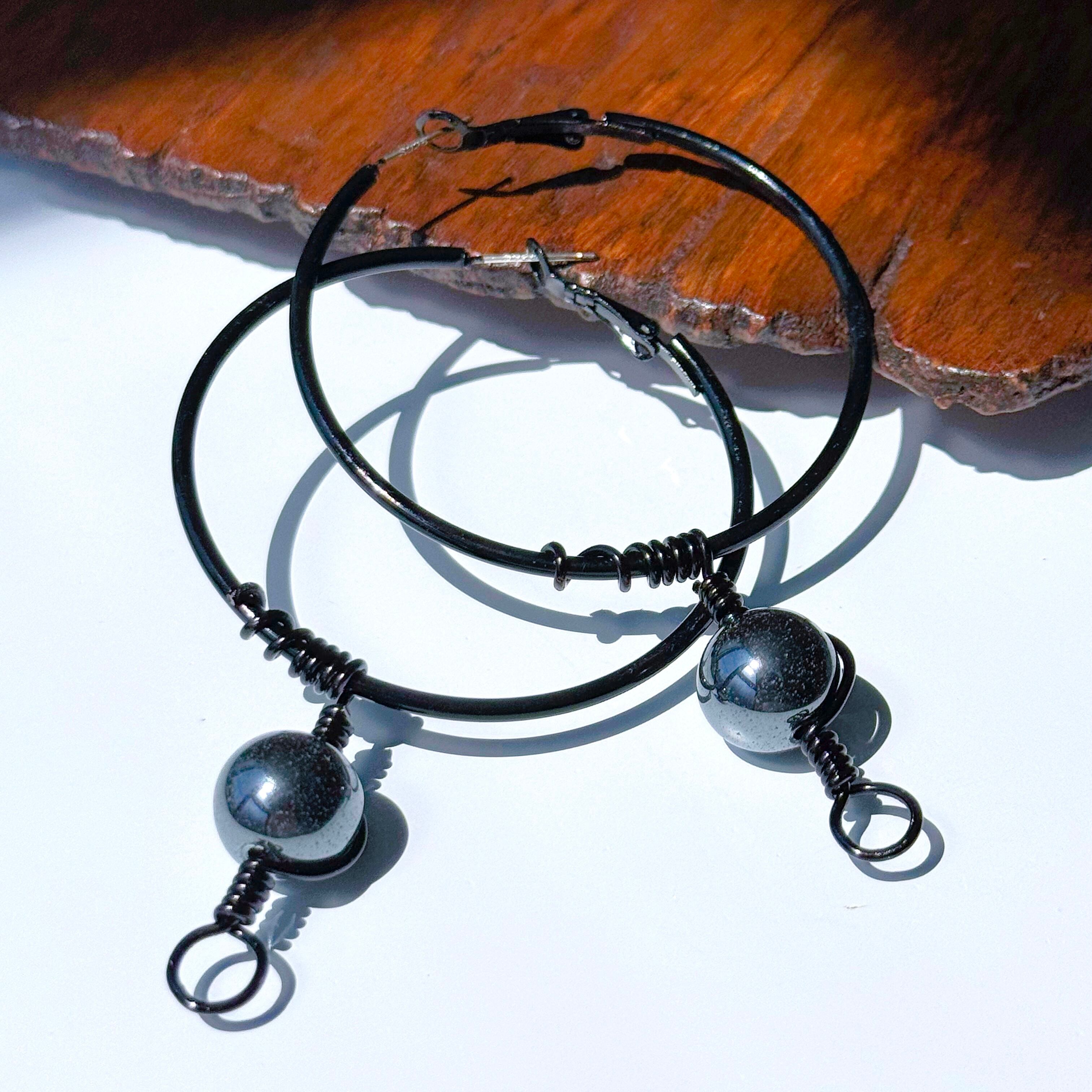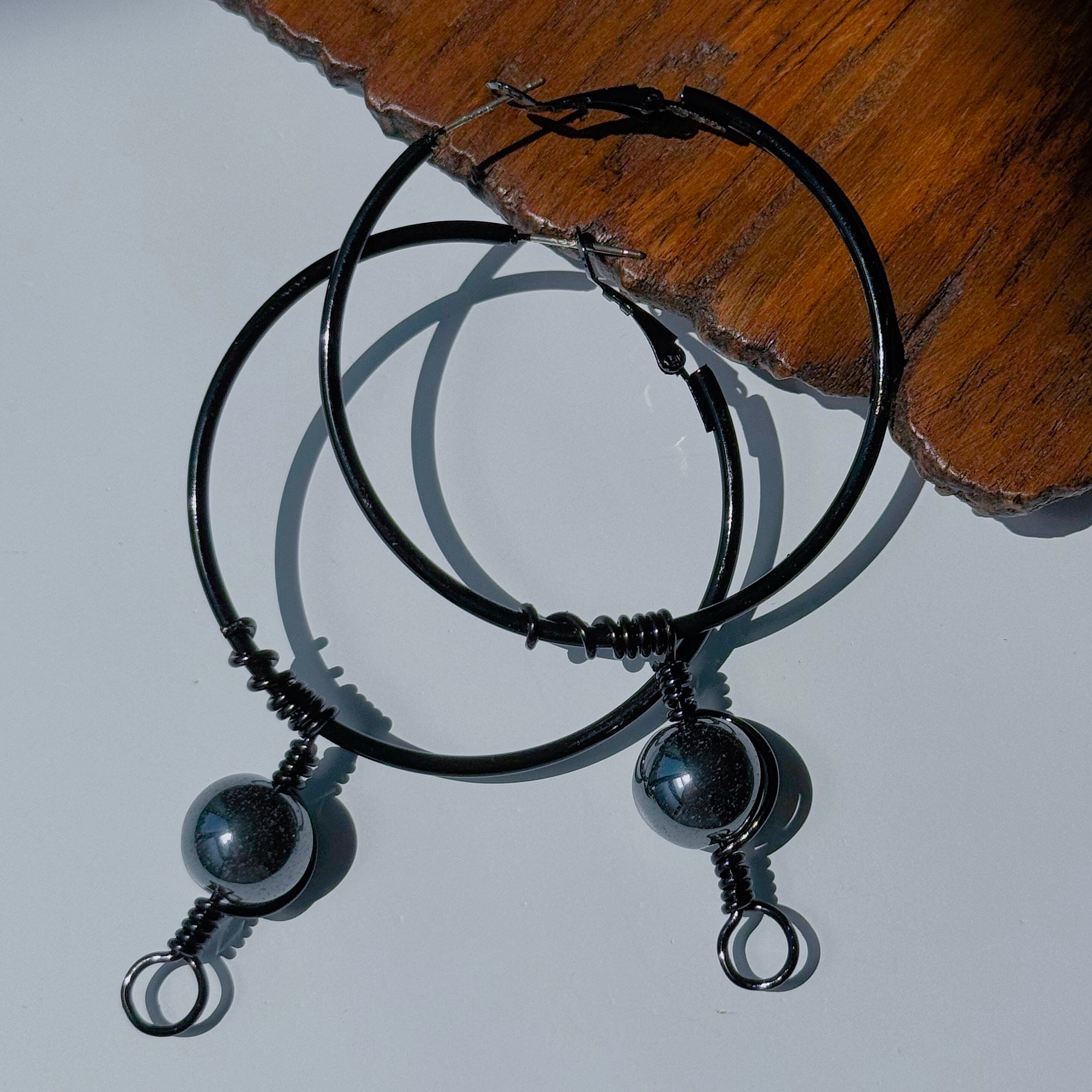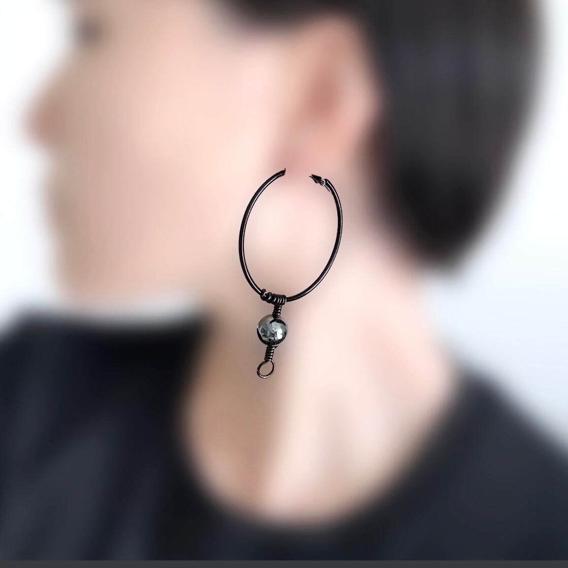 【ヘマタイト(赤鉄鉱)】アイヌ ニンカリ風ピアス ブラックフープピアス/50mm